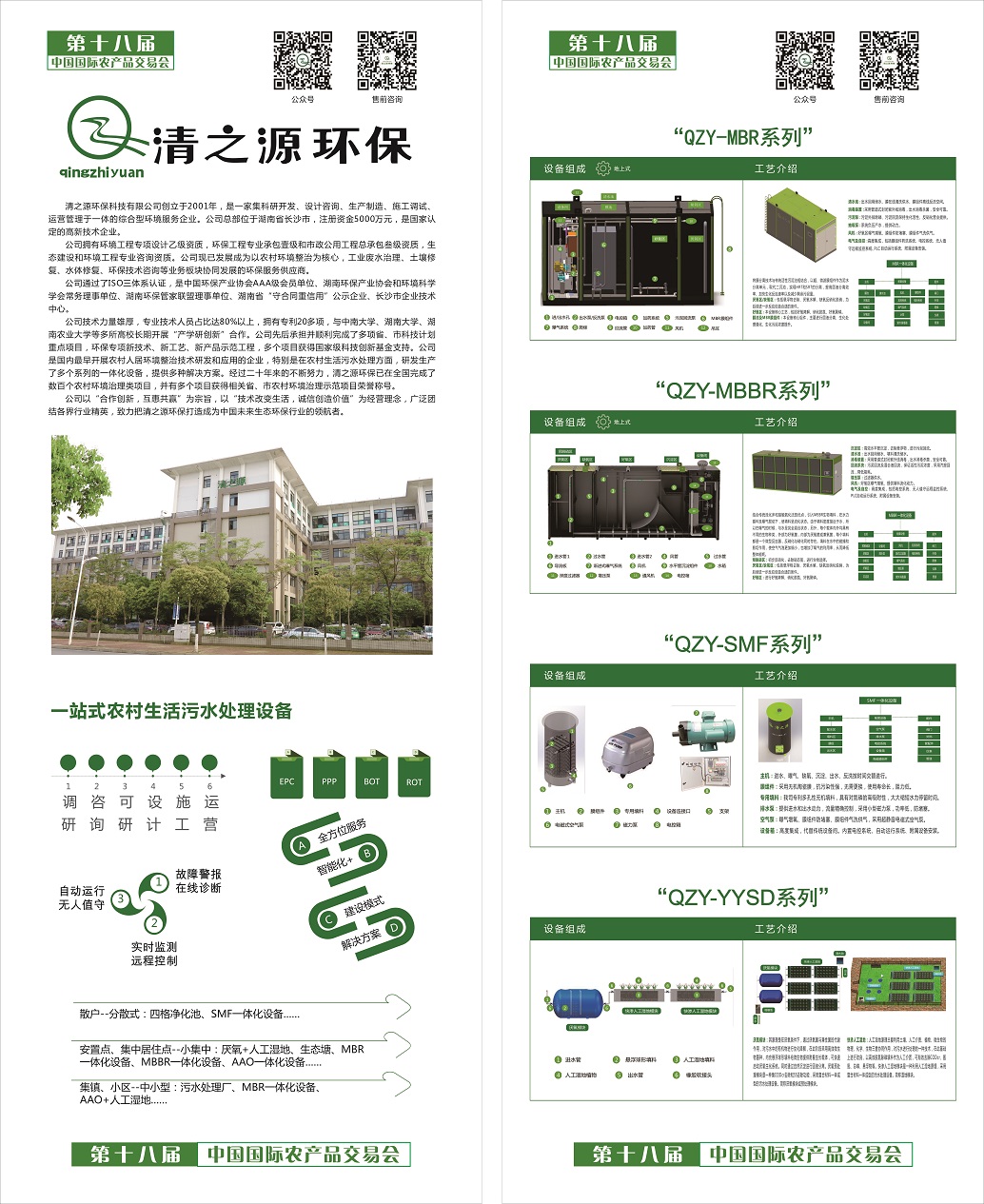 作為受邀參會(huì)的農(nóng)村人居環(huán)境治理企業(yè)品牌,清之源環(huán)保展示了多種自主研發(fā)的污水處理拳頭產(chǎn)品:裝配式生活污水處理設(shè)備、一體化污水處理設(shè)備、人工濕地模塊設(shè)備等,這些設(shè)備投資省、效果好、建設(shè)工期短、操作簡(jiǎn)單、便于運(yùn)行維護(hù),工程應(yīng)用效果良好,吸引了眾多參觀者前來(lái)觀摩咨詢洽談。清之源環(huán)保公司品牌招商中心蔡喆、技術(shù)研發(fā)人員何羿霖,向意向客戶重點(diǎn)介紹了公司在農(nóng)村人居環(huán)境整治領(lǐng)域的典型案例及我司自主研發(fā)的一站式農(nóng)村生活污水處理設(shè)備等拳頭產(chǎn)品的突出優(yōu)勢(shì)。我司“QZY-MBR系列”、“QZY-MBBR系列”、“QZY-SMF系列”、“QZY-YYSD系列”產(chǎn)品優(yōu)勢(shì)突出,市場(chǎng)競(jìng)爭(zhēng)力強(qiáng),廣泛應(yīng)用于村鎮(zhèn)集中居住點(diǎn)、小區(qū)、賓館、飯店、度假區(qū)、學(xué)校、寫(xiě)字樓等日常生活污水處理、回用工程,給意向客戶留下了深刻印象??蛻粢恢抡J(rèn)為我司產(chǎn)品品牌優(yōu)勢(shì)明顯,市場(chǎng)前景良好,希望能在農(nóng)村環(huán)境治理領(lǐng)域進(jìn)一步開(kāi)展合作。