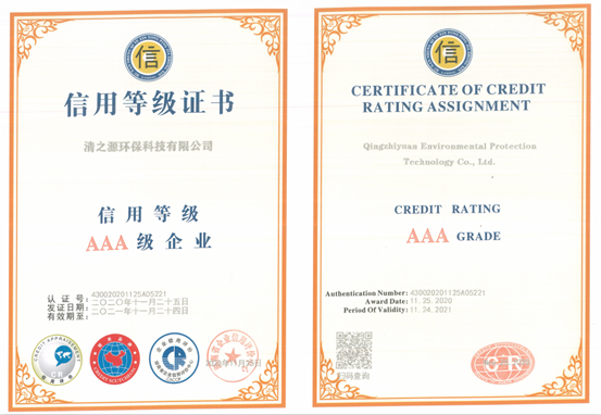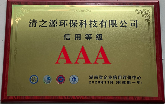 喜報(bào)|清之源環(huán)保再次獲評“AAA級企業(yè)信用等級”